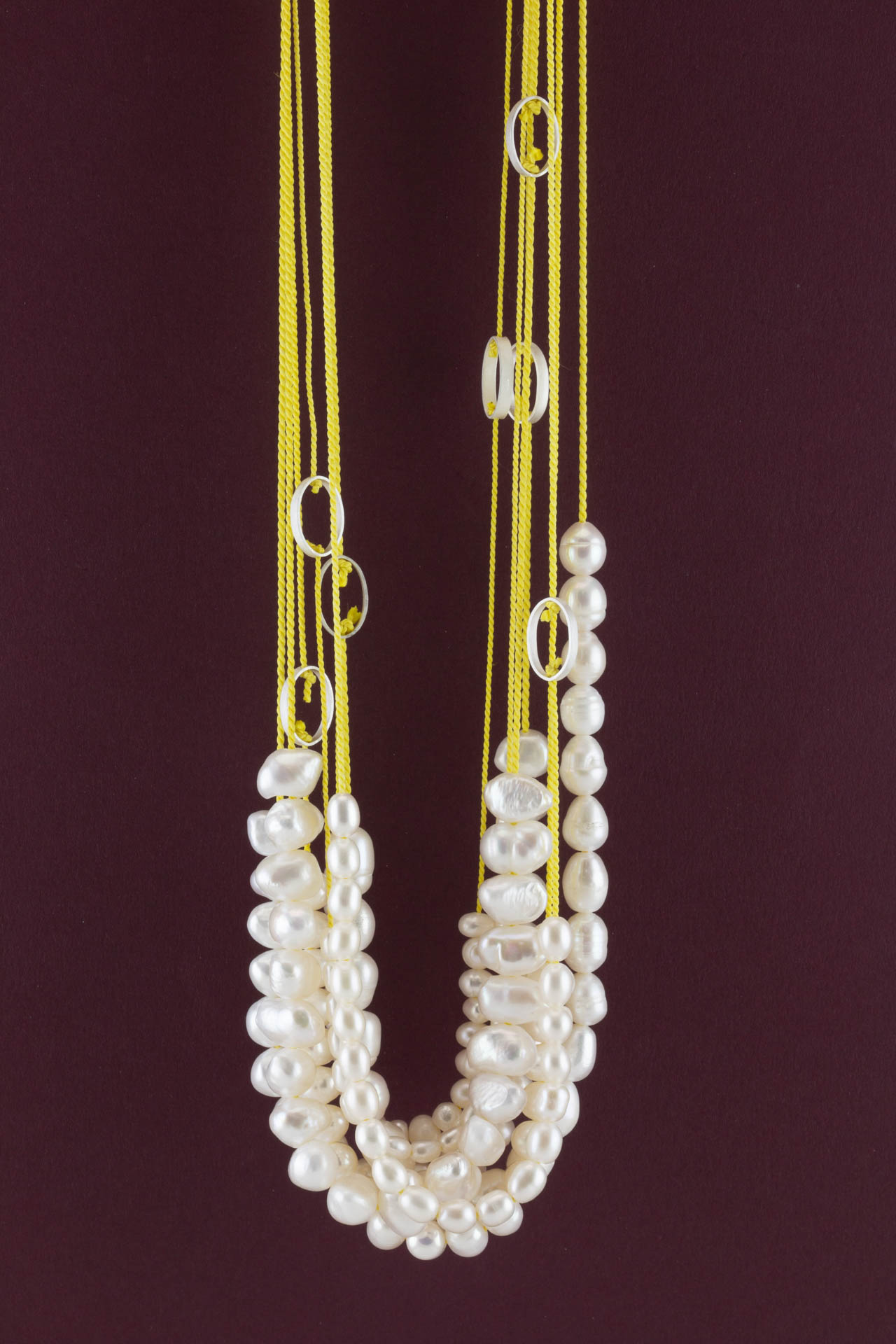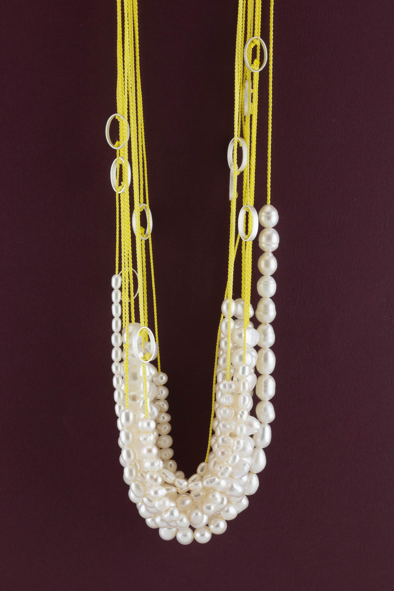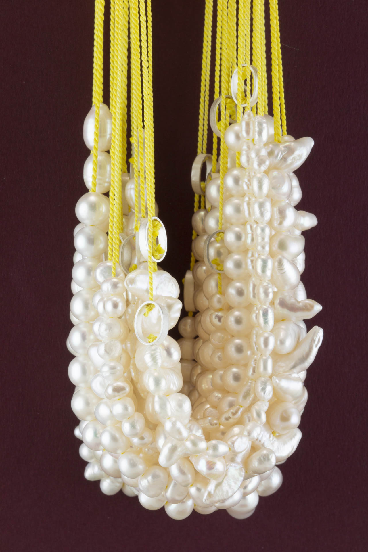 Since 1995 I have regularly used pearls in my work. Most of the times, I do not use all pearls of a cord, which has led to the creation of a large collection of loose pearls of all shapes, colors and sizes.
